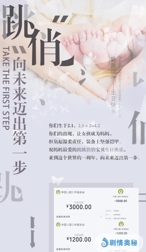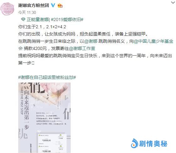 要知道相比没有任何意义的热搜,今日(1月14日)对于谢娜来说最有意义的一件事莫过于在双胞胎女儿跳跳俏俏一岁生日来临之际,以她们的名义做公益捐款了。