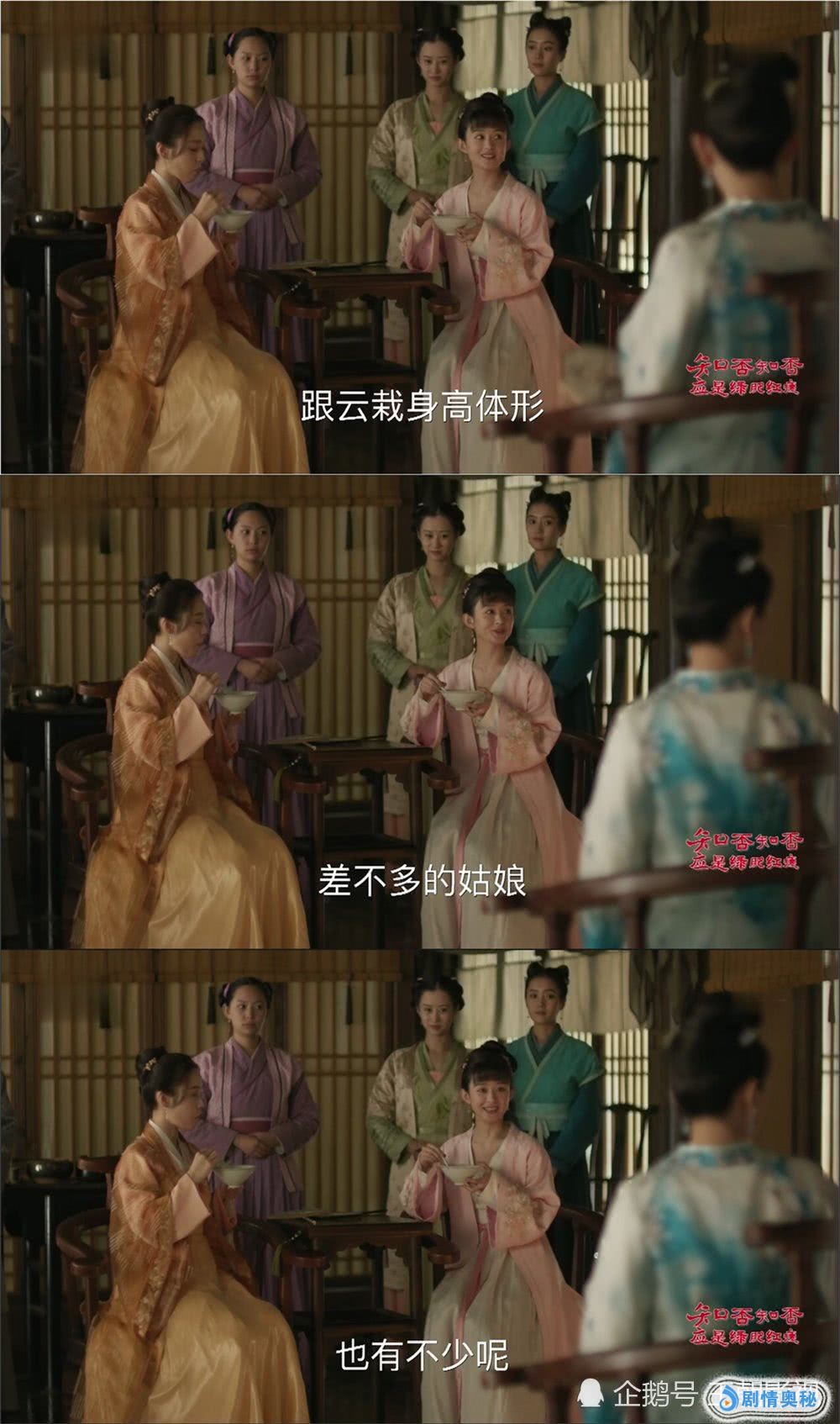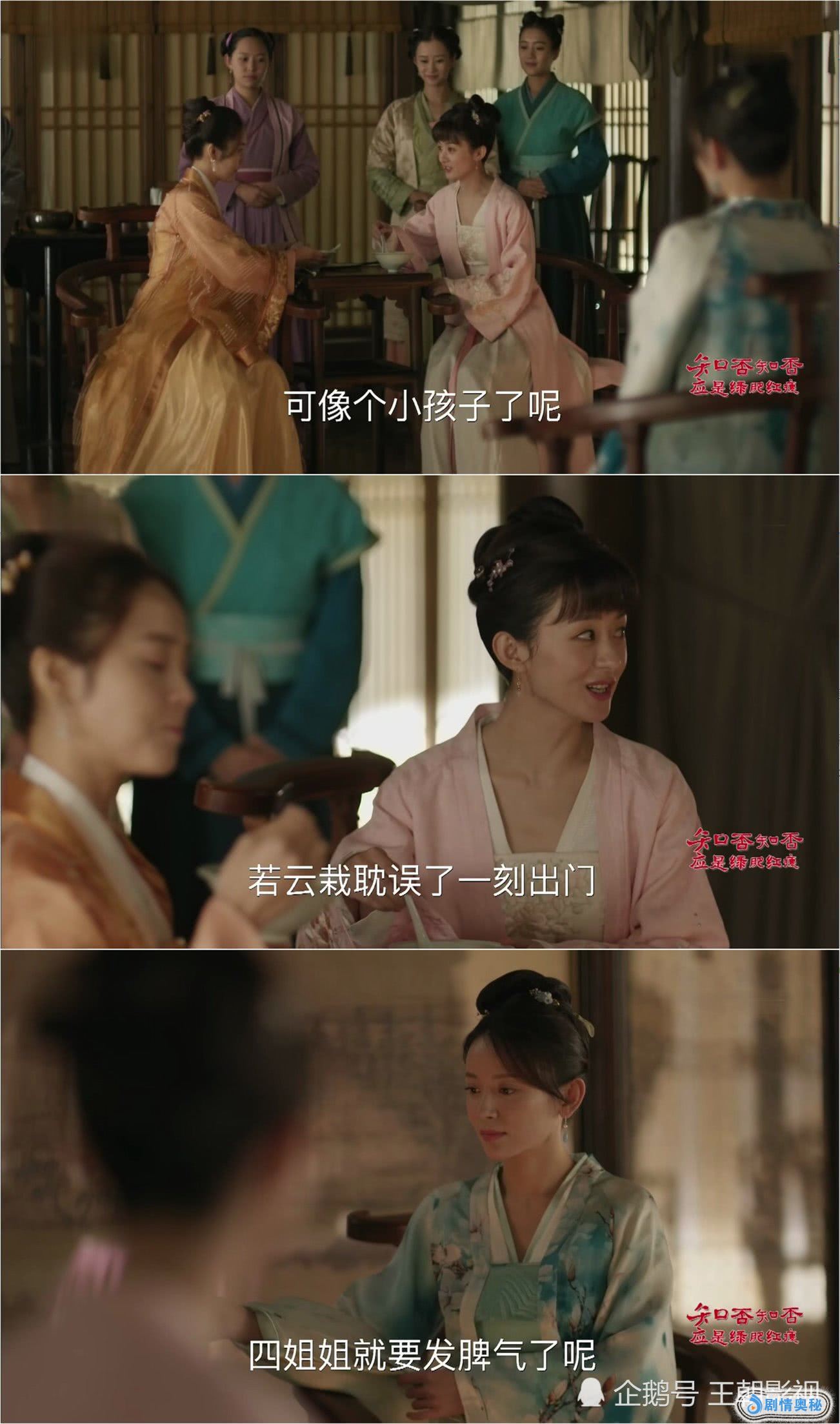 接下来墨兰因为划破妹妹的脸被禁足,之后更是扮成丫鬟的样子出去偶遇梁晗,第二个伏笔也已经开始运作了。墨兰和梁晗的奸情已经进行了多日,接下来只要找个人来拆穿就可以了,但是明兰并不合适。在祖母这儿吃茶明里暗里带上墨兰身边的云栽身形与墨兰相似是第三个伏笔。