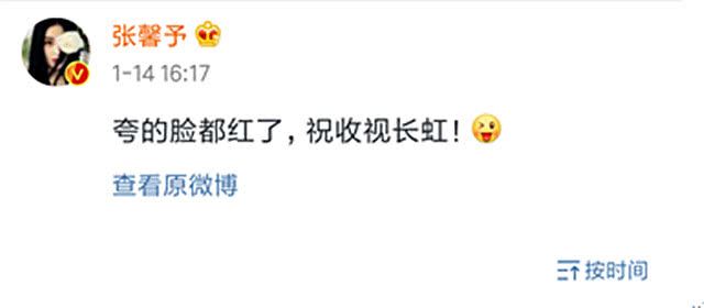 对于制片人的夸奖,张馨予也做出了回应,表示自己被夸的脸红了,还预祝《小女花不弃》这部作品收视长虹!