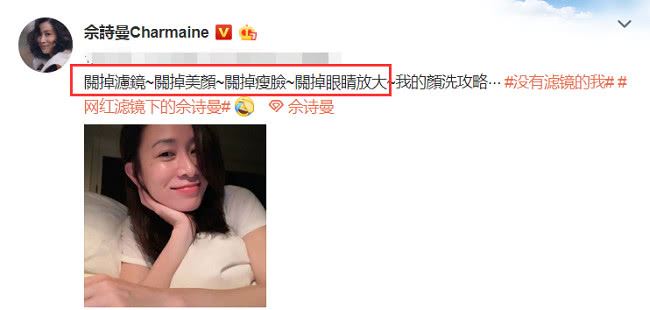 但是在佘诗曼看到镜头中的自己之后,却被吓了一条。都知道现在很多的短视频软件都是有美颜和滤镜了,原本一位长时间活动在镜头之下的佘诗曼会适应这样的镜头,但是没想到的是看到镜头中的自己,反倒将佘诗曼吓得后退了一步,因为开了美颜和瘦脸之后,镜头中人怎么看都没有佘诗曼的样子了。