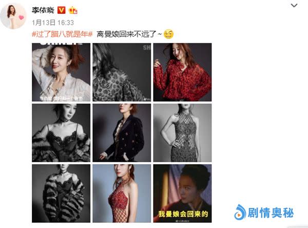 林小娘是下线了,但曼娘却要回归了,本来以为曼娘带着儿子逃走后就不会在有她的戏份了,但在腊八节的那天,曼娘的扮演者李依晓发微博称:“过了腊八就是年,离曼娘回来不远了。”由此可见曼娘后期还是会有戏份的。