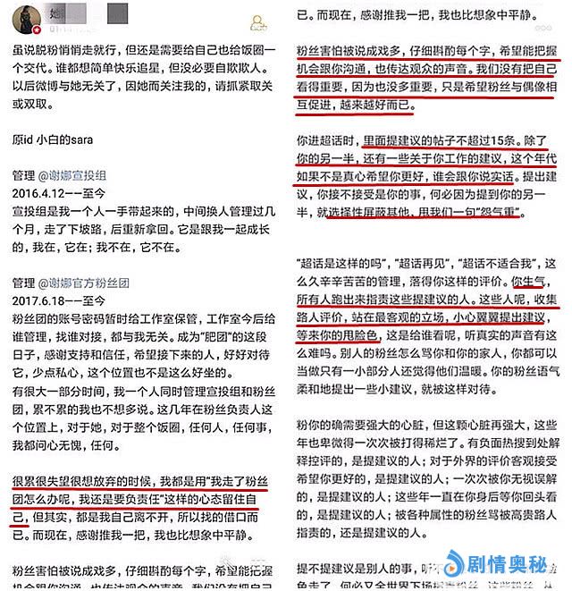 这位大粉是掌管谢娜宣投组和官方粉丝团账号的粉丝,对谢娜也算兢兢业业,很有责任心的一位粉丝,这位大粉透露当时超话中给谢娜提建议的帖子不超过15条,除了关于她另一半外,还有很多工作上的建议,但谢娜却选择性忽视其他,看到粉丝提及张杰就生气了,幽幽的埋怨一句“怨气重”,惹得其他粉丝纷纷围讨提建议的粉丝。