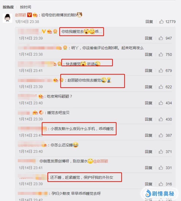 不少粉丝看到赵丽颖大半夜不睡觉,居然还上微博活跃,于是纷纷在微博底下催着赵丽颖:“你给我睡觉去”。配上的表情也是让人看了忍不住感觉到温暖。看看赵丽颖的粉丝,真的是操碎了心。比赵丽颖本人怀孕还激动,时刻盯着怀孕的赵丽颖。看看赵丽颖的粉丝,就能知道被当做团宠是什么感觉了,责备中都是满满的爱意。第一次觉得粉丝生偶像的气也能这么可爱。
