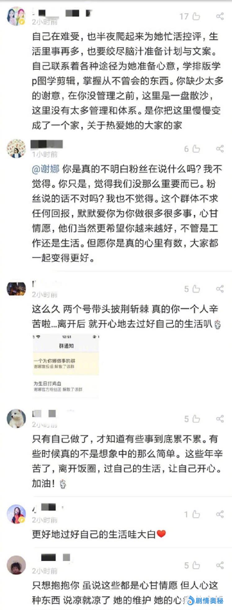 而这些脱粉的粉丝也说明了为何会离开谢娜的原因,他们直言这些年来其实很累,发生这样的事情也是很寒心,也很失望,自己的爱豆又一点都不在意这些粉丝的想法,也不在意粉丝的意见吗,那就各自安。一直以来都是粉丝在理解,可是谢娜却从来没有理解过粉丝的寒心。