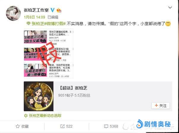 张伯芝怀三胎的消息最近闹得沸沸扬扬的,之前有人爆出孩子的父亲是谢霆锋,并且描述得有模有样,就连孩子的名字都取好了,不过后来确定此消息是谣传罢了!在1月13日,关于张伯芝三胎父亲是谁的问题又传出新料:张伯芝即将于周星驰结婚,并且称张伯芝三胎的父亲是周星驰!不过没过多久,张柏芝工作室就发布微博辟谣,还模仿《如懿传》中如懿的口气“‘假的’这两个字,小室都说倦了!”。