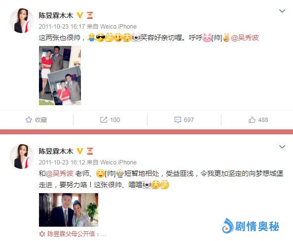 陈昱霖的微博在2011年开始更新,那时候的陈昱霖还是各种青春洋溢,再搭配上阿拉蕾的造型,真的是无敌可爱。那时候的陈昱霖23岁,吴秀波则是53岁,两人的第一次合影是在2011年,此后的六年两人在微博上基本无互动,所以这段情确实很隐蔽。