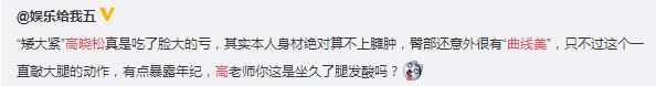 近日,一条称赞高晓松曲线美的微博突然上了热搜:““矮大紧”高晓松真是吃了脸大的亏,其实本人身材绝对算不上臃肿,臀部还意外很有“曲线美”,只不过这个一直敲大腿的动作,有点暴露年纪,高老师你这是坐久了腿发酸吗?”
