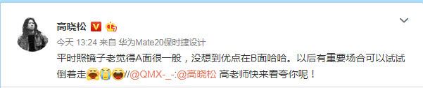 从照片中我们可以看到高晓松傲人的曲线美,对此高晓松自己也幽默地回复到:“平时照镜子老觉得A面很一般,没想到优点在B面哈哈。以后有重要场合可以试试倒着走”!