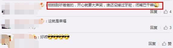 要知道对于正处于换牙期的铛铛,之前身为爸爸的黄毅清在陪女儿玩耍时,他也是教女儿铛铛笑的时候抿嘴笑要好看,不过,对于黄毅清的这条小建议,当时就有网友评论“铛铛别听爸爸的,开心就要大声笑,谁还没掉过牙呢,闭嘴吧干嘛。”现在看来铛铛也是早已忘记爸爸对她说过的那些话了。不过话说回来,这样的铛铛还是很可爱的,你觉得呢?