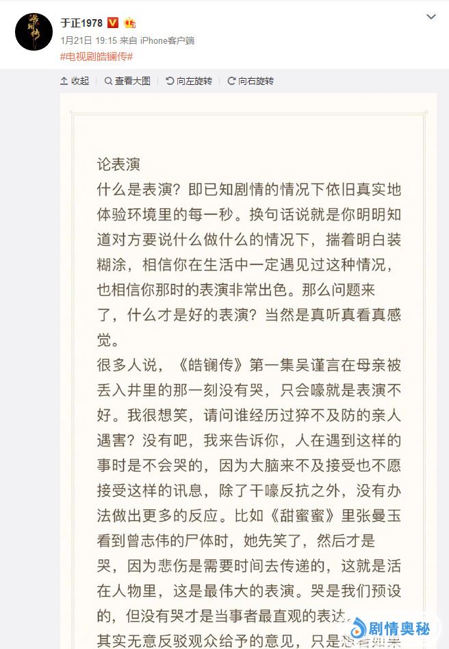 优质皓镧传开播受质疑,于正发文力挺女主却拿影后比?网友:猪队友!