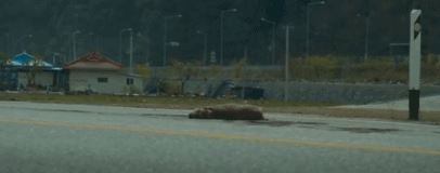 当它被大卡车撞倒之后,没过多久又跌跌撞撞地爬了起来。